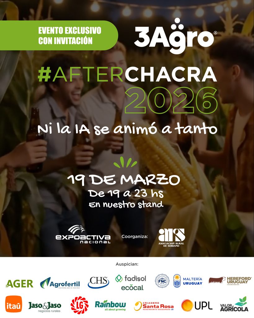 Acreditaciones_3agro19032026 Acreditate al evento Completá los siguientes campos, y recibirás un mail con un código QR que deberás presentar en la puerta para poder ingresar. Celular Nombre Apellido Mail Empresa Código de invitación Tipo Productor Agropecuario Asesor Técnico de Productores Empresa de Insumos y Servicios Asesor Técnico Comercial Otro Localidad Departamento Seleccionar Artigas Canelones Cerro Largo Colonia Durazno Flores Florida Lavalleja Maldonado Montevideo Paysandú Río Negro Rivera Rocha Salto San José Soriano Tacuarembó Treinta y Tres Click aquí para pre cargar tus datos en futuras acreditaciones de verdelive y que no tengas que volver a escribirlos. ACREDITARME
